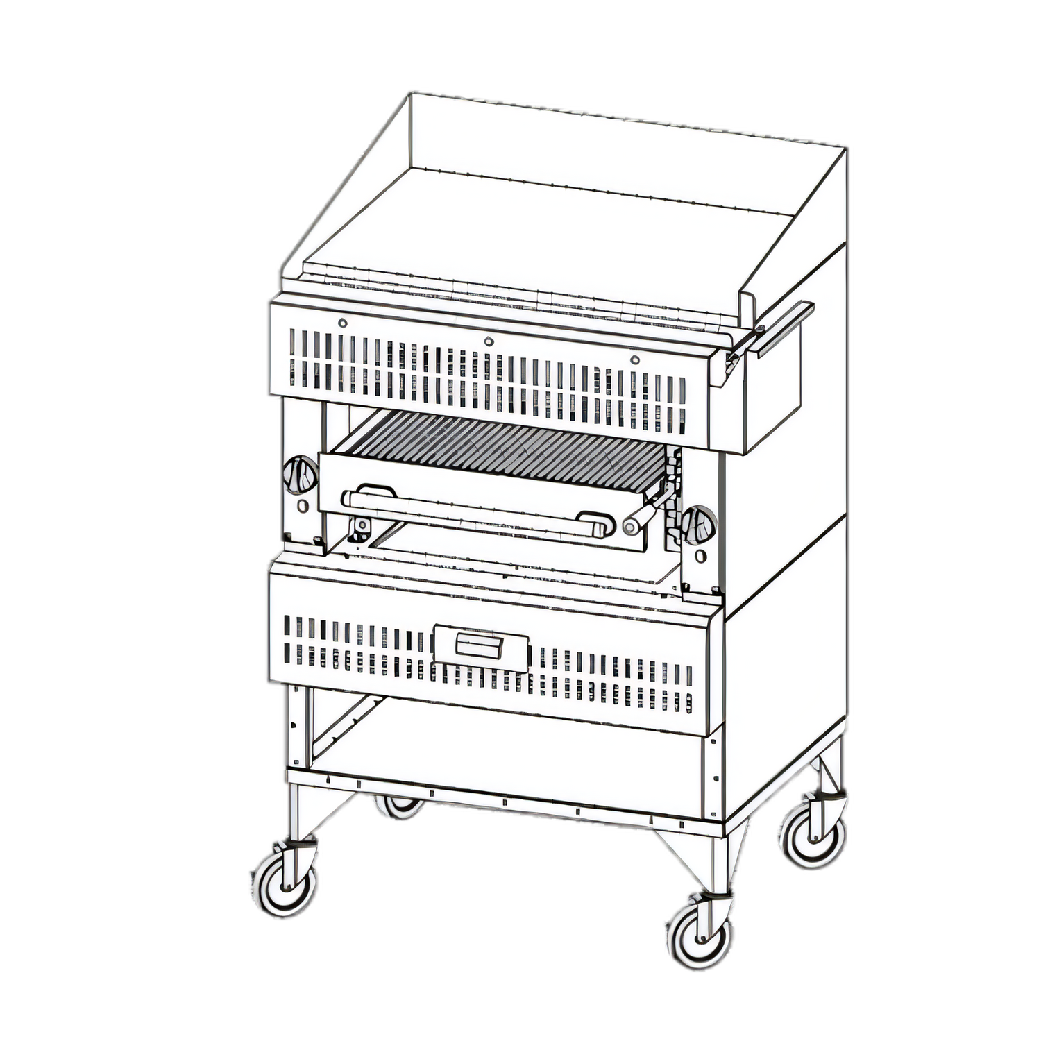 Heavy Duty Chophouse Broiler, 36" wide, gas, (3) 33,500 BTU burners, over-fired deck type, 5-position adjustable broiler grid, 1/2" certified griddle plate on top with 2" side & backsplashes, front grease trough, stainless steel front, sides, legs & undershelf, casters, 100,000 BTU, CSA, NSF