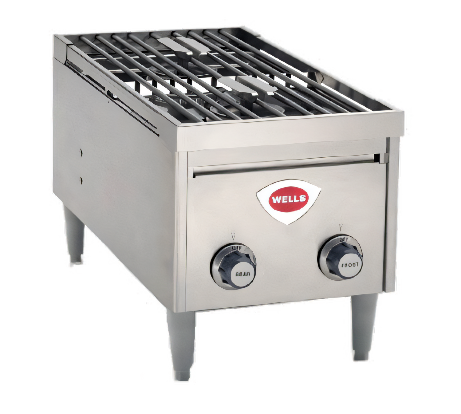 Energy-saving two-burner performance in a space-saving footprintGive your line cooks full-sized power without sacrificing valuable counter space. The Wells H2412G-IO pairs twin 12,000 BTU stainless burners with an automatic pan-actuated “Instant-On” ignition that lights only when cookware is present—slashing gas consumption while delivering the speed, control and durability busy kitchens demand.