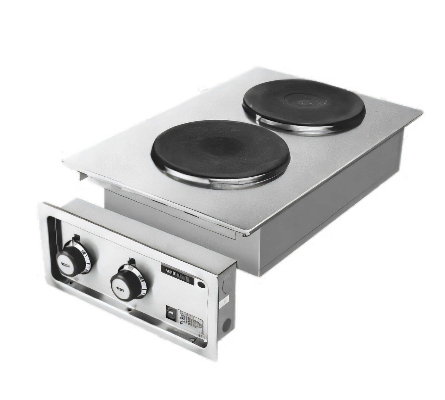 - Two 9" (229 mm) solid cast-iron “french plate” elements deliver even, consistent heat—ideal for stock pots, sauces, and sauté pans.