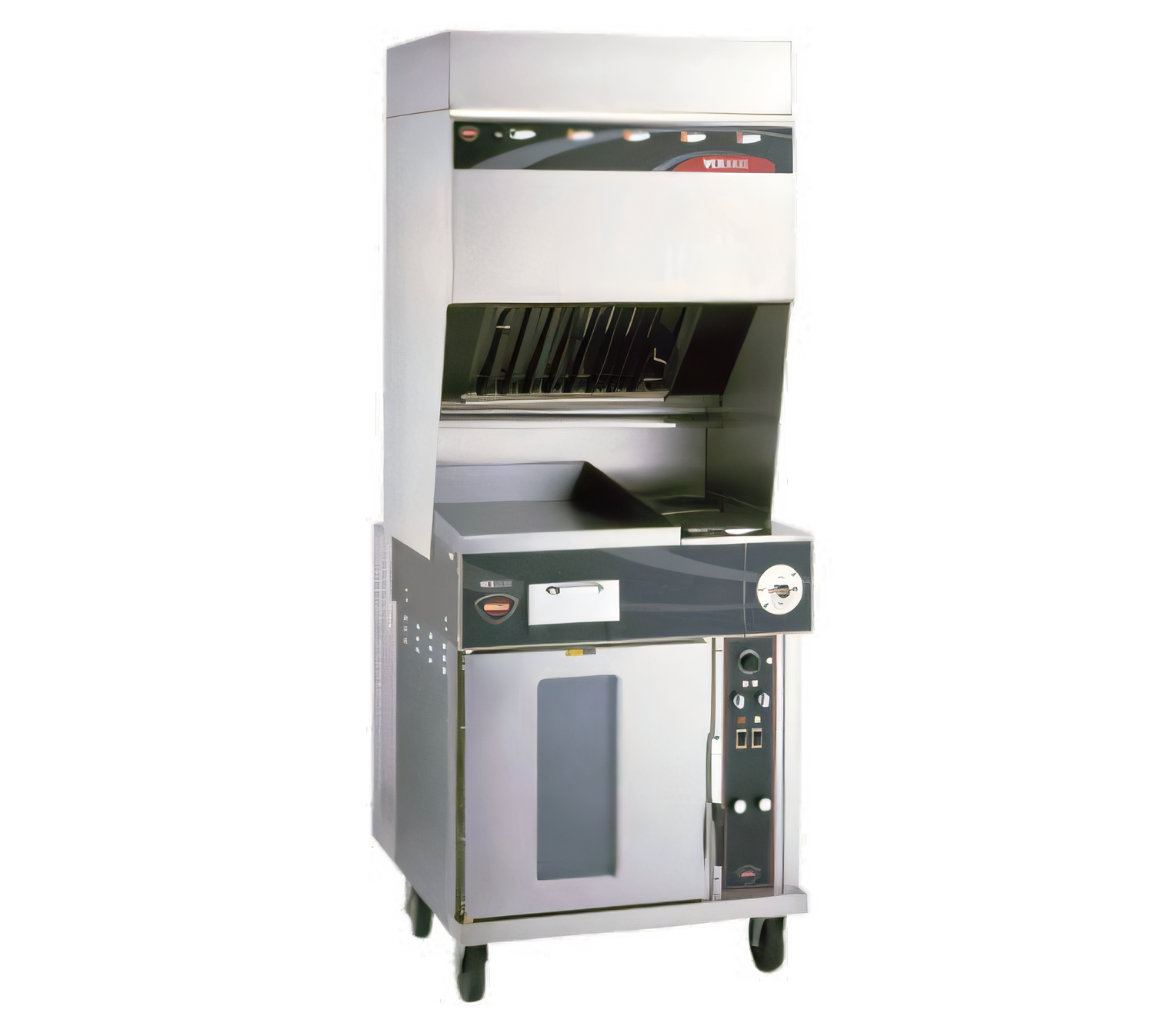 18.5" thermostatic griddle • (2) 9" French hot plates • Programmable convection oven • Self-contained Type-1 hoodBring full-service cooking to locations where ducted ventilation is impossible, impractical, or simply too expensive. The Wells VCS2000 (model WVO2HFG) pairs a UL710B-listed recirculating hood with powerful electric cooking equipment and an integrated ANSUL R-102 fire-suppression system—all in one, movable, stainless-steel cabinet.