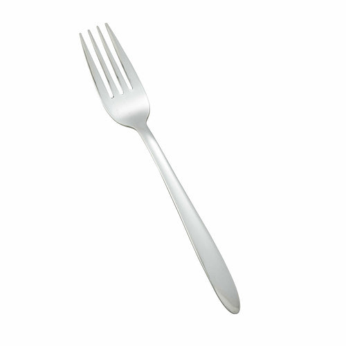 Winco Flute 7-3/8" heavy-weight dinner fork, 18/0 stainless steel, mirror finish—durable, elegant choice for restaurants and events.