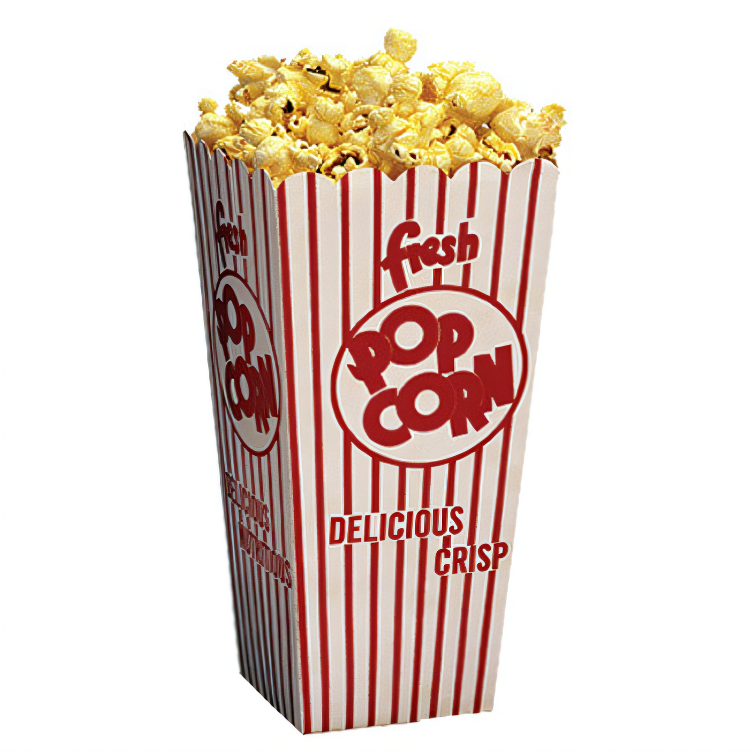 Benchmark Popcorn Scoop Box, 0.75 oz., 3-1/2" x 3-1/2"D x 6"H, red & white striped design, (500 boxes per case) (Qty Break = 1 Case)