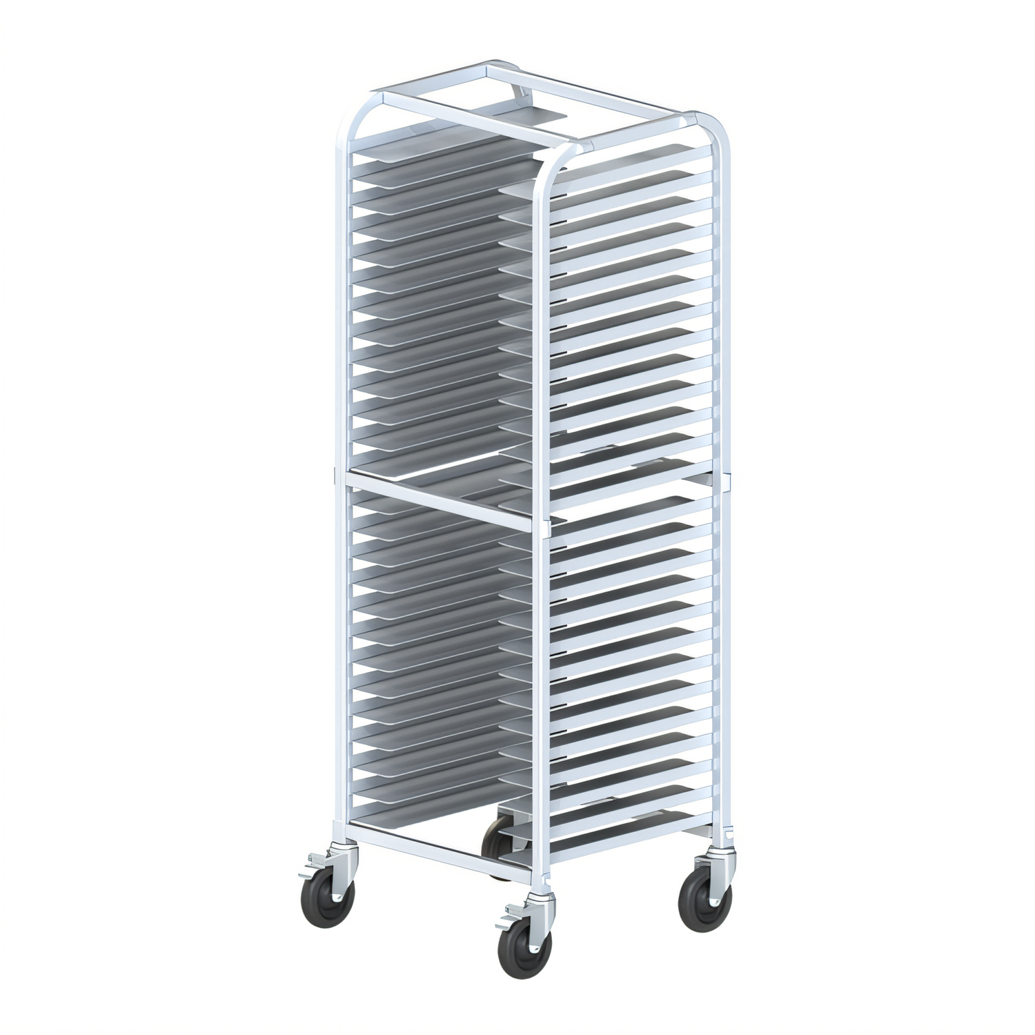 Pizza Rack, 23"W x 21"D x 62-7/8"H, 26-tier, 800 lb. capacity, 2" spacing, (4) casters (2 with brakes), welded aluminum, NSF (Qty Break = 1 each)