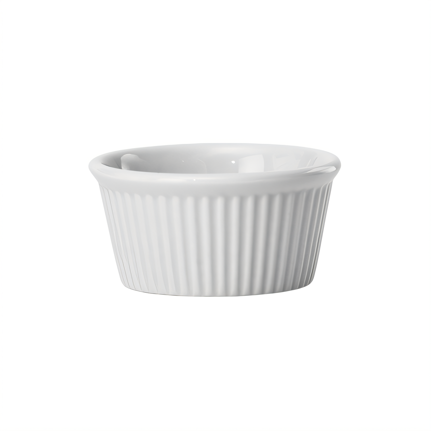 Ramekin, 3 oz., 3" dia. x 1-1/2"H, Round, Fluted, Porcelain, White, (Qty Break = 4 dozen)