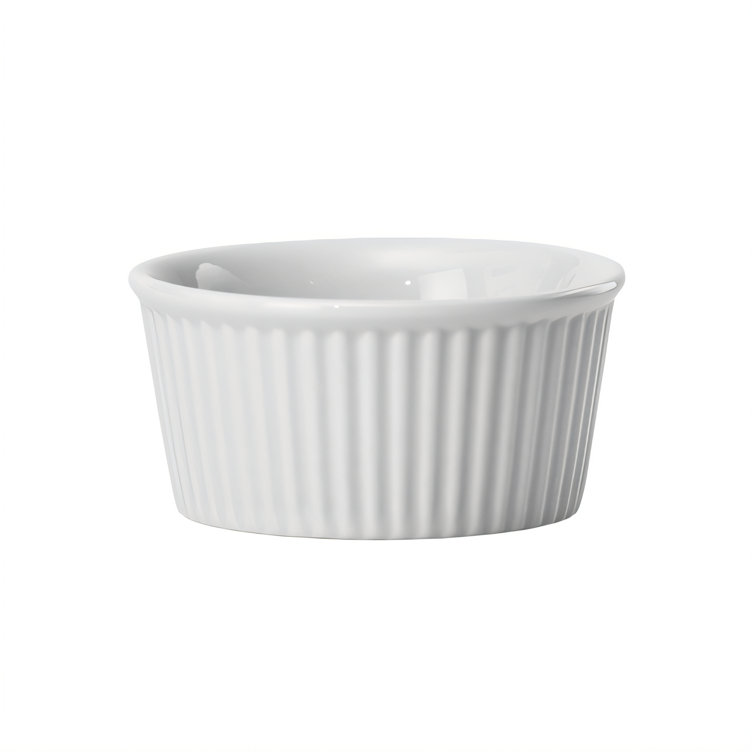 Ramekin, 6 oz., 3-1/2" dia. x 1-3/4"H, Round, Fluted, Porcelain, White, (Qty Break = 3 dozen)