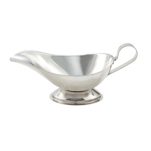 Winco GBS-8 8oz stainless steel gravy boat with handle — durable, easy-pour design ideal for restaurants or home entertaining.
