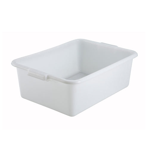 Winco PL-7W 21.5"x15"x7" white polypropylene bus tub — durable NSF-approved 1-compartment dish box, ideal for kitchens (sold in 6s).