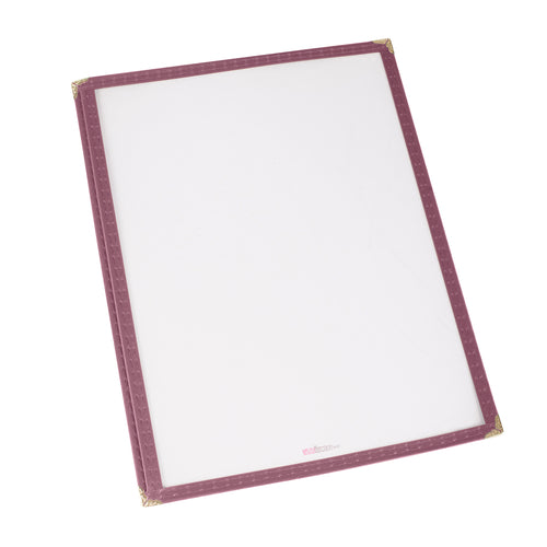 Menu Cover, single, overall 9-3/8" x 14-7/8", holds 8-1/2" x 14" paper, double stitched edging, plastic, burgundy (Qty Break = 25 each)