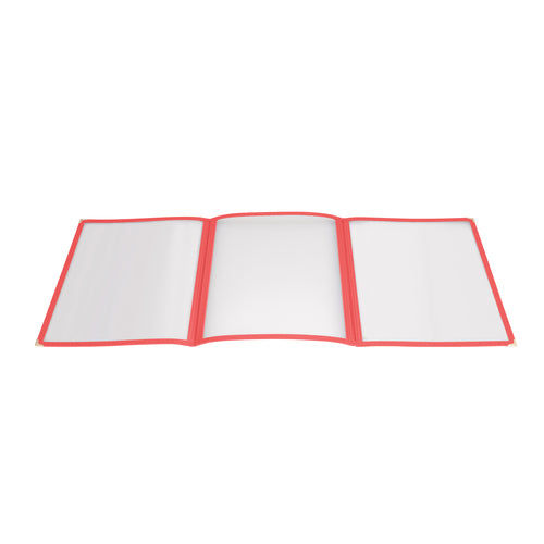 Menu Cover, triple fold, overall 9-1/2" x 12-1/8", holds 8-1/2" x 11" paper, double stitched edging, plastic, red (Qty Break = 25 each)