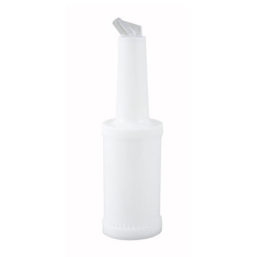 Winco PPB-1W 1 qt multi pour bottle with white spout & lid, NSF-certified—ideal for bartending, juices, and liquor; durable and hygienic.