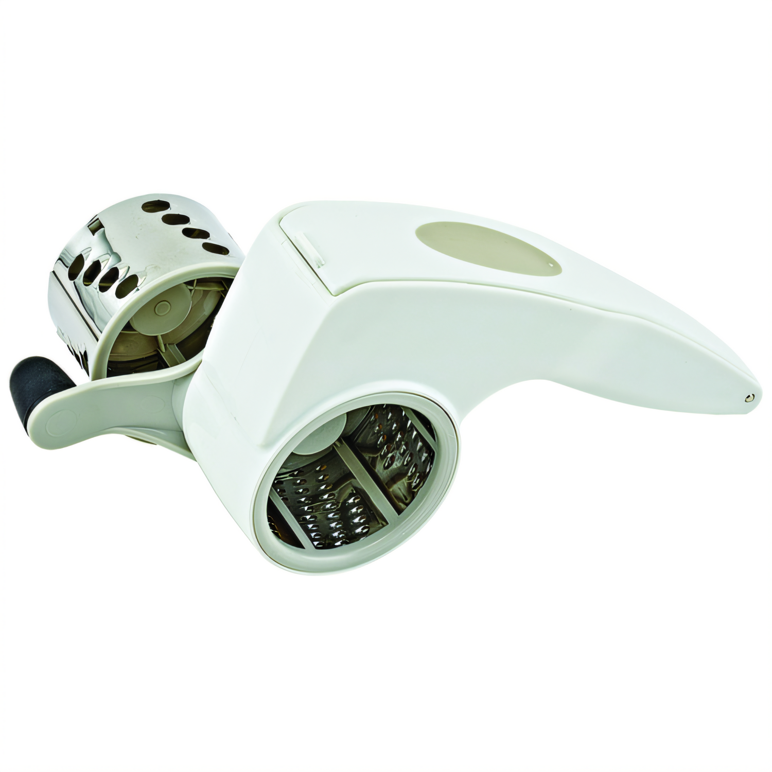 Cheese Grater, manual, 7"L x 3-1/2"W x 4"H, with (2) interchangeable drums for fine and coarse grating, dishwasher safe, plastic (Qty Break = 6 each)