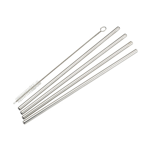 Drinking Straw Set, 5-piece, 1/4" dia. x 8-1/2"H, straight, includes: (4) straws and (1) cleaning brush, dishwasher safe, 18/8 stainless steel (Qty Break = 12 set)