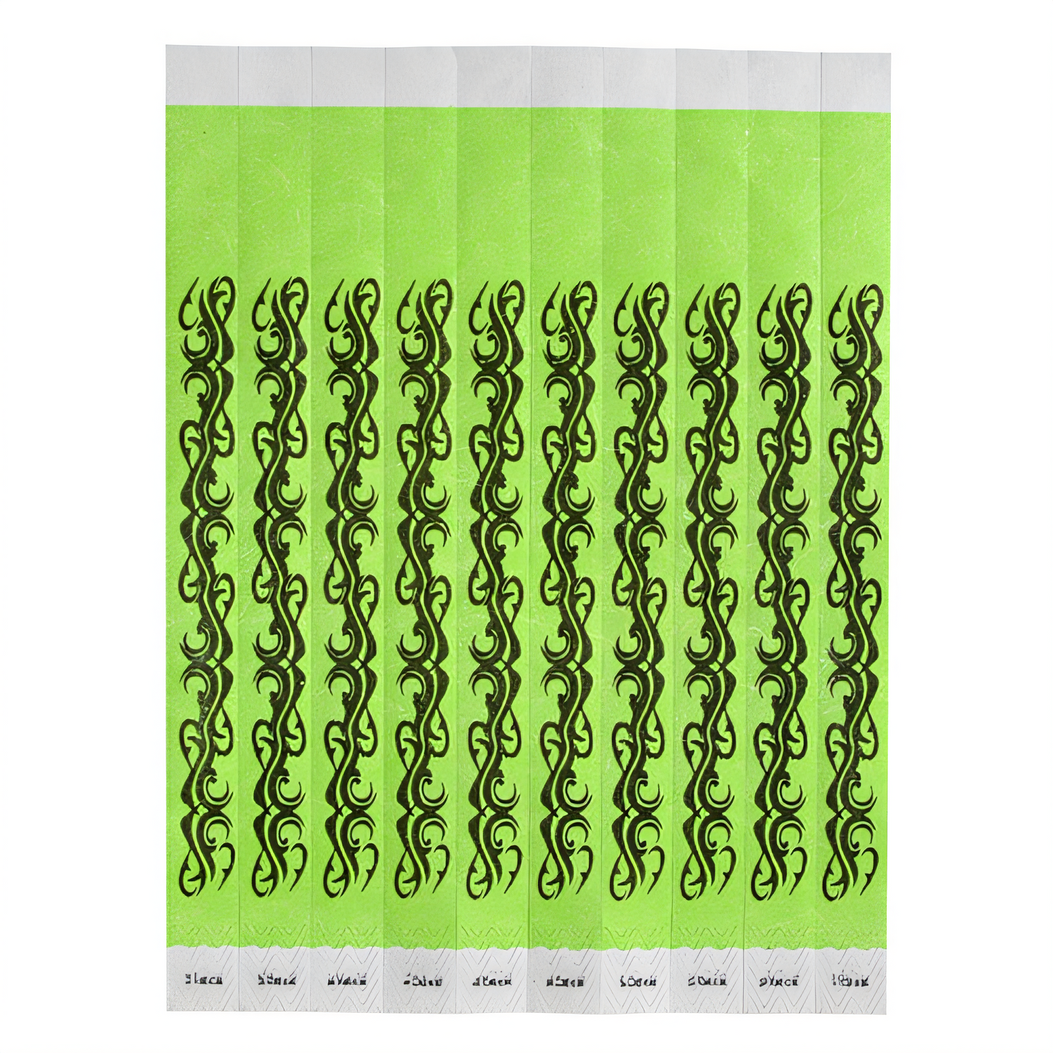 Bar Maid® Wristbands, 3/4"W X 9.5"L Tyvek (No Tear), Sequentially Numbered, Tattoo (Green/Black), 500 Bands/Pack (Qty Break = 2 packs)