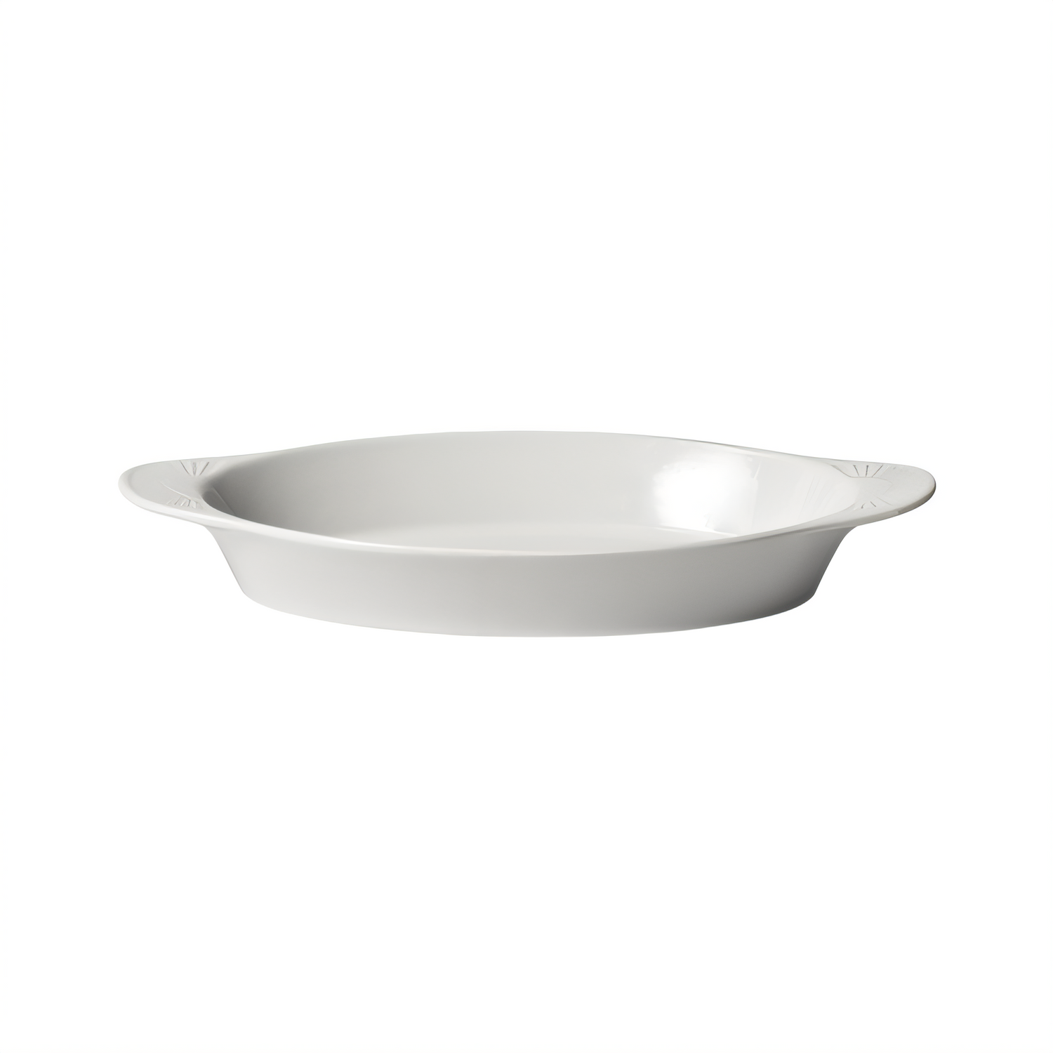 Welsh Rarebit Baking Dish, 15 oz., 10-1/2"L x 5-3/8"W x 1-3/8"H, Oval, Porcelain, White, (Qty Break = 3 dozen)